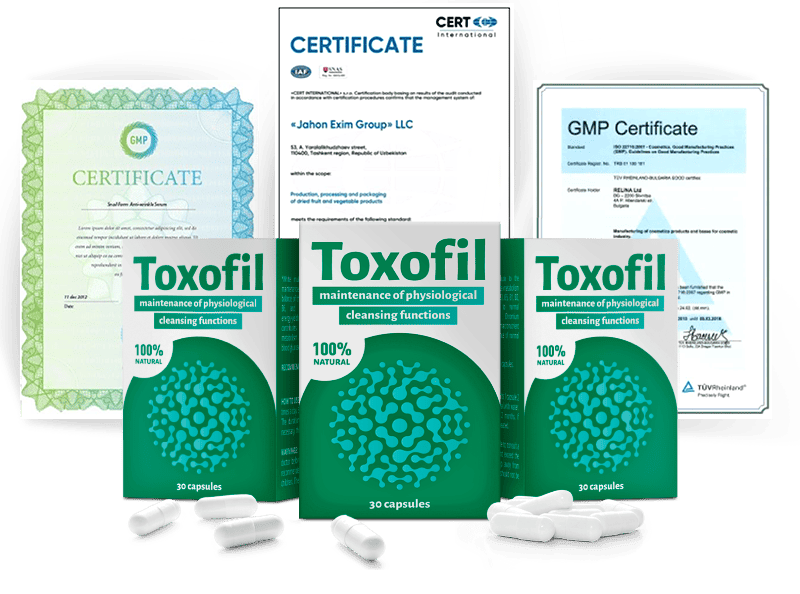 Se recomienda tomar las cápsulas Toxofil a diario durante 8–10 semanas, repitiendo el curso al menos 2–3 veces al año.
